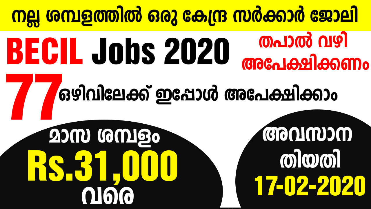 BECIL Recruitment 2020 | Surveyor & Programmer Posts | Total Vacancies 77 | Last Date 17.02.2020 | Download BECIL Application Form @ becil.com