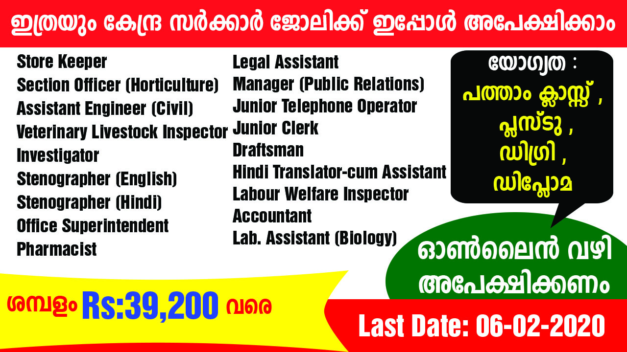 Job Name | Store Keeper, Section Officer (Horticulture), Assistant Engineer (Civil), Veterinary Livestock Inspector, Investigator, Stenographer, Office Superintendent, Pharmacist, Legal Assistant, Manager, Junior Telephone Operator, Junior Clerk, Draftsman, Hindi Translator-cum-Assistant, Labour Welfare Inspector, Accountant & Lab Assistant |