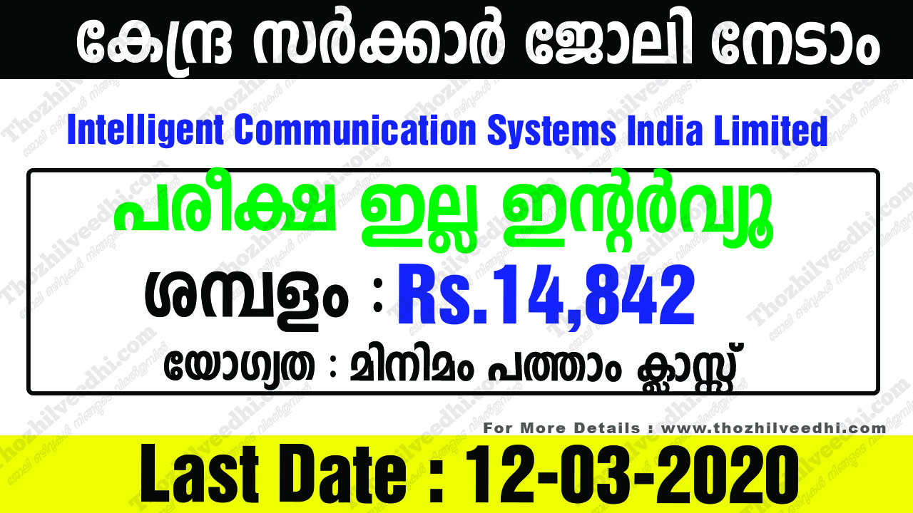 Intelligent Communication Systems India Limited has released the following vacancy details with their recent recruitment notification 2020. They invite 7 Candidates to fill their vacancies. You can check their job vacancy details below.