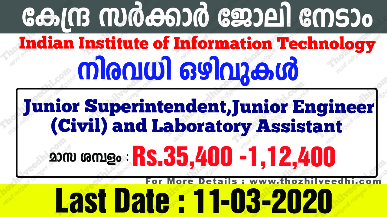 Indian Institute of Information Technology, Nagpur | Junior Superintendent, Junior Engineer (Civil) and Laboratory Assistant | Total Vacancies: 6 | Last Date: 11th March 2020 | Apply Mode: Offline |Website: https://iiitn.ac.in/