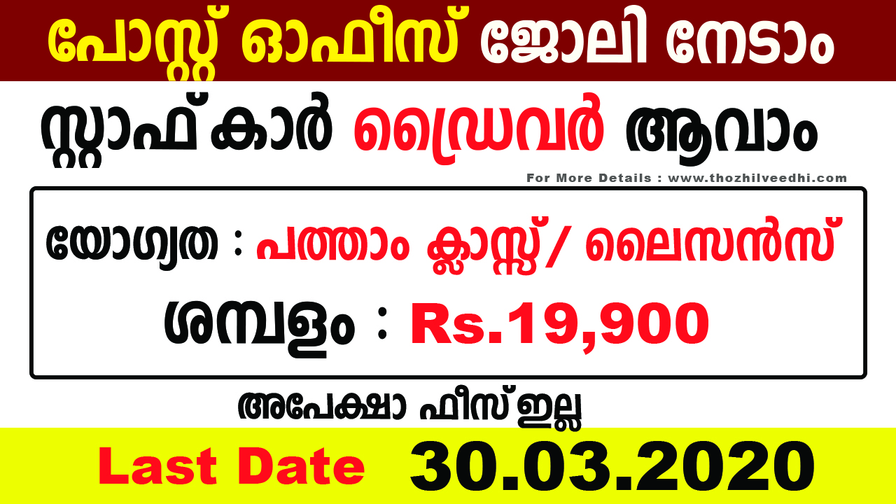 Maharashtra Postal Circle Recruitment 2020 | Staff Car Drivers (Ordinary Cadre) Posts | Total Vacancies 14 | Last Date 30.03.2020 | Apply Mode: Online | Download India Post Application Form @ indiapost.gov.in