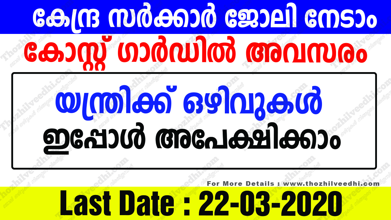 Indian Coast Guard Recruitment 2020: Indian Coast Guard is officially out of the recruitment notification for 37 candidates to fill their Yantrik jobs in All over India. The aspirants who are looking for the Central Govt jobs can utilize this wonderful opportunity. Also, the Online application for the Indian Coast Guard Latest Notification 2020 will start on 16th March 2020. Interested aspirants should apply for the post before 22nd March 2020 for Indian Coast Guard Recruitment 2020. Furthermore, to know more information about Yantrik Careers, aspirants can refer below all the details. Therefore, All the eligibility criteria for the Indian Coast Guard Recruitment 2020 are given below.