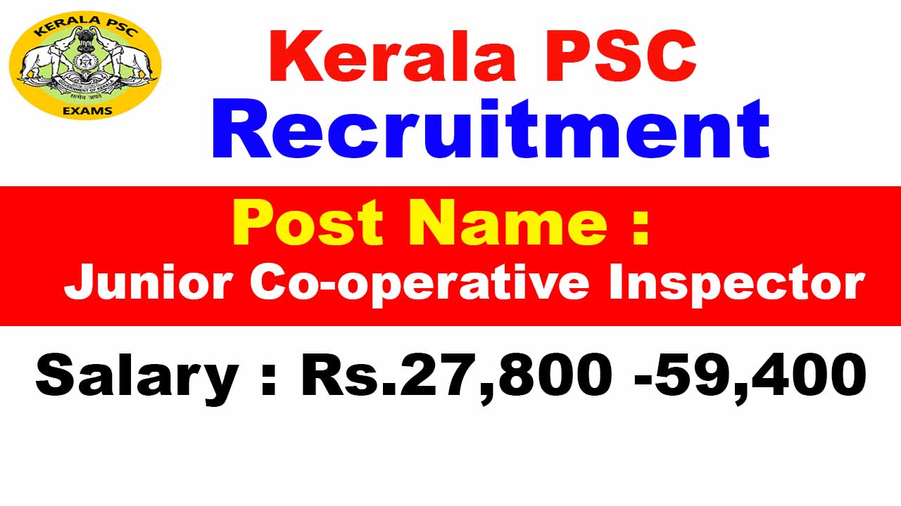 Kerala PSC Junior Co-operative Inspector Recruitment 2019- Notification Details