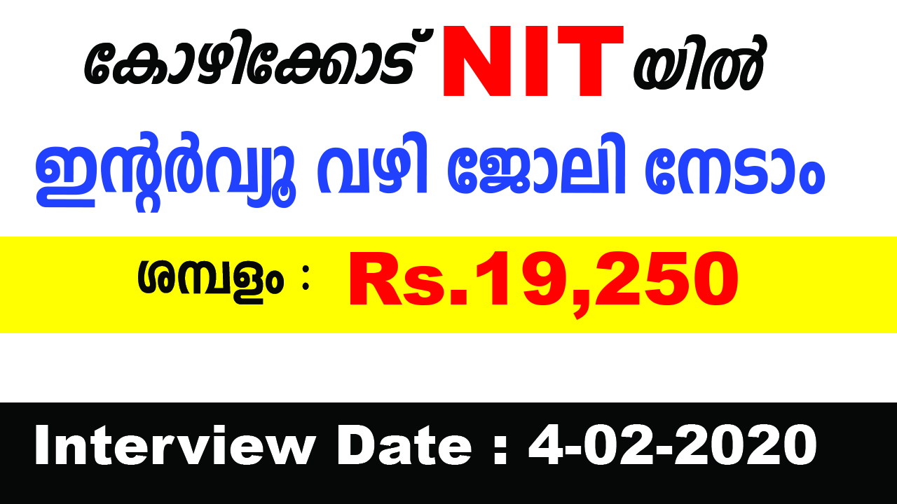 NATIONAL INSTITUTE OF TECHNOLOGY CALICUT | Post Name : Junior Engineers (Electrical) | Salary : Rs.19,250 | Interview Date : 04.02.2020