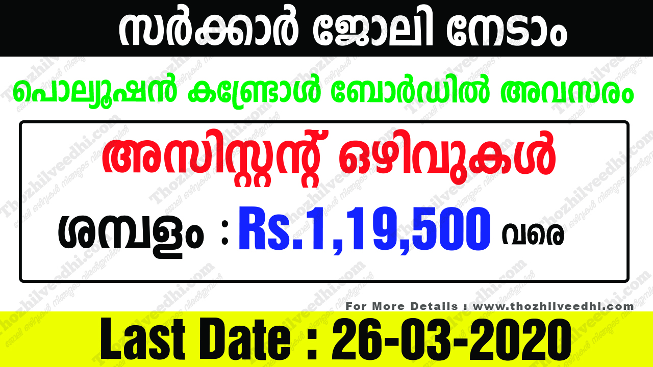 Tamil Nadu Pollution Control Board (TNPCB) | Assistant | Total Vacancies: 242 | Last Date: 26th March 2020 | Apply Mode: Online |Website: https://www.tnpcb.gov.in/