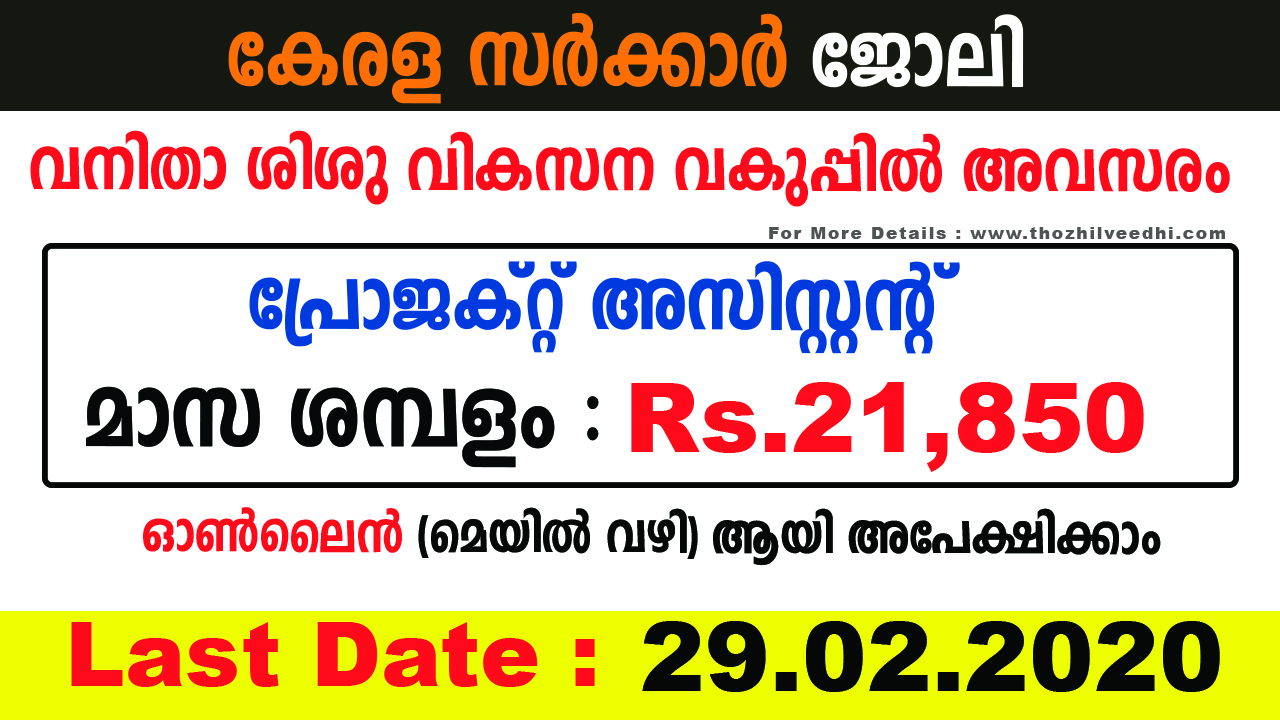 Women and Child Development Department (WCD) | Post Name: Project Assistant | Salary: 21850 | Apply Mode: Online (Through Mail ) | Last Date: 29.02.2020